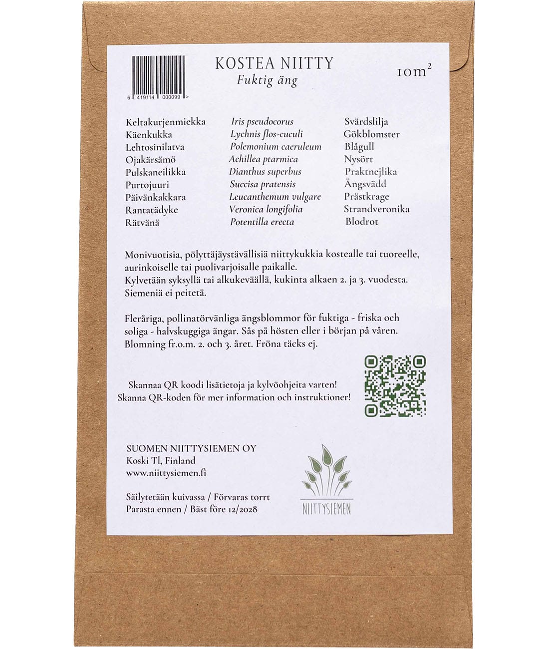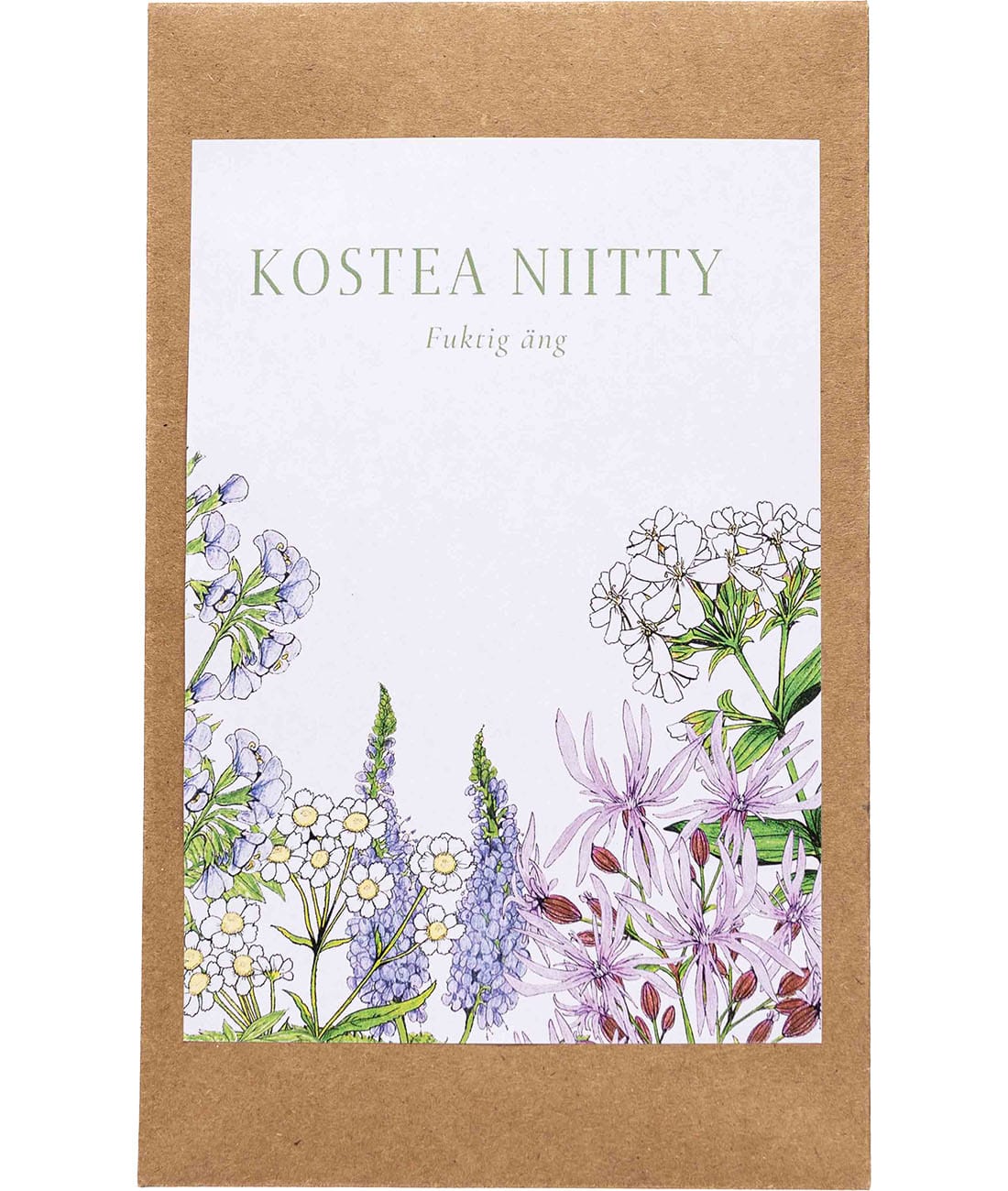 Kostea niitty: Tuoreen, kostean tai rehevän niityn perusseos, sopii myös multaville maille ja savikkoon. Sisältää monivuotisia luonnonkasveja.
